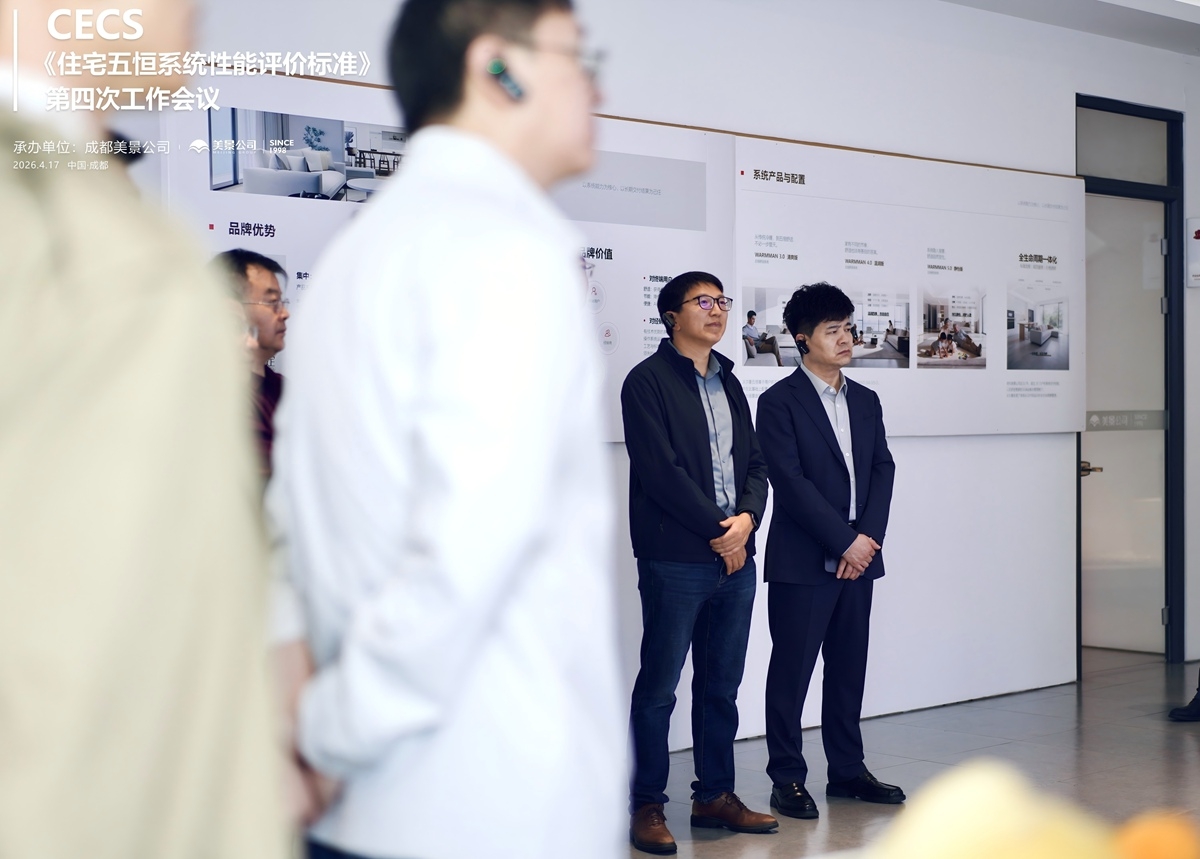 4月17日,由中国工程建设标准化协会指导,成都美景公司承办的CECS《住宅五恒系统性能评价标准》第四次工作会议,在成都美景-沃尔曼科技体验馆圆满举行。