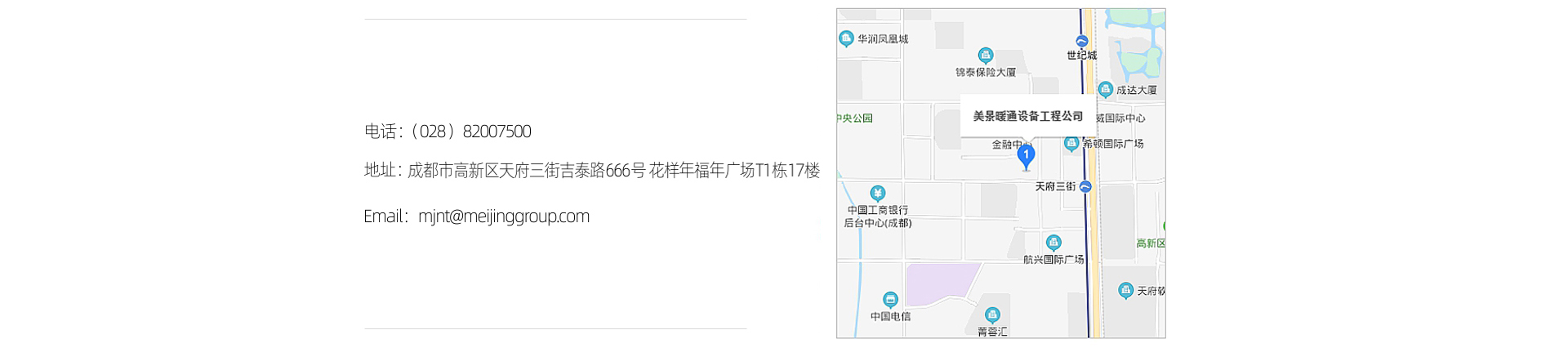 美景暖通公司,全称“四川美景暖通工程有限公司”,是美景公司旗下,一家专门面向项目客户,承接暖通商用、家用项目业务的专业公司;持有:建筑机电安装工程专业承包二级、消防设施工程专业承包二级、工程设计资质证书等。主要提供中央采暖系统、中央空调系统、中央水处理系统、中央新风系统等舒适家居系统的设备销售、安装、维修保养服务。
